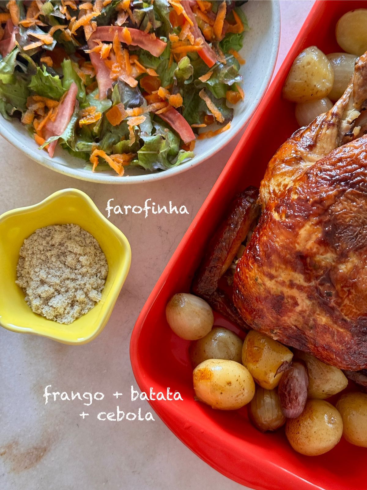 Acompanha batata e cebolo assada e farofa